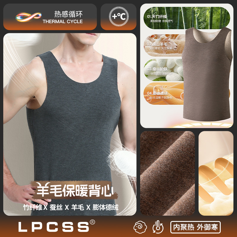 芬腾羊毛蚕丝保暖内衣男绒德无痕发热内穿加绒加厚打底背心冬上衣