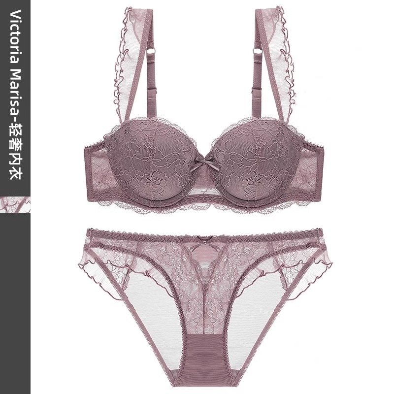 维多利亚玛丽莎小胸显大聚拢甜美蕾丝荷叶花边文胸罩内衣女士套装