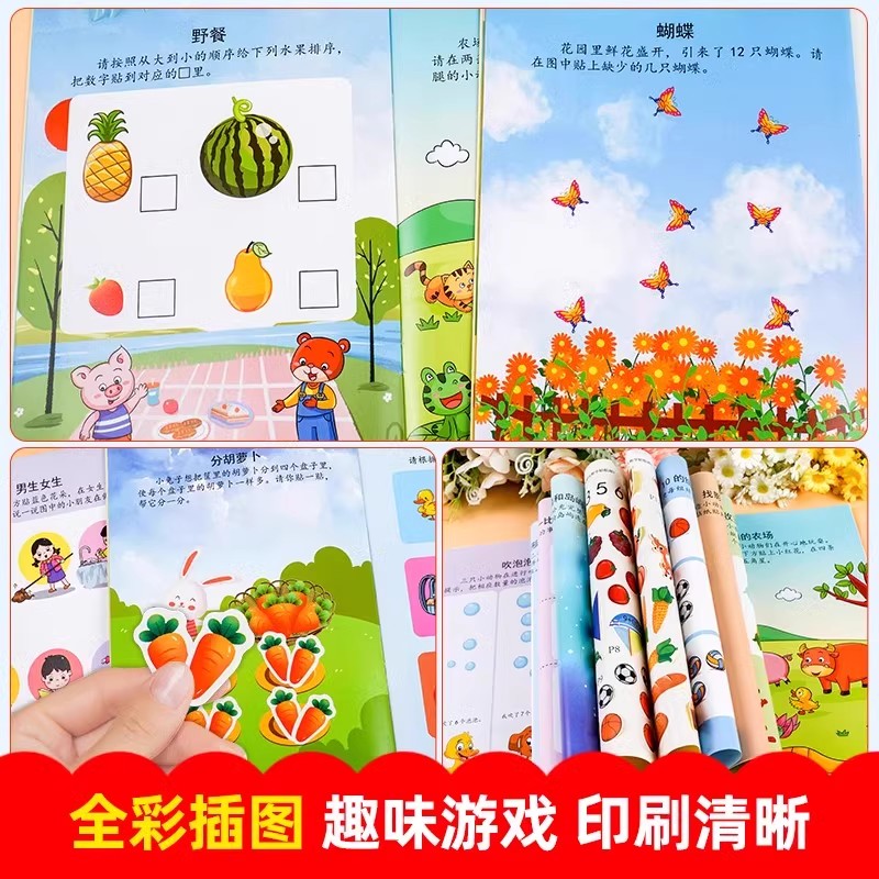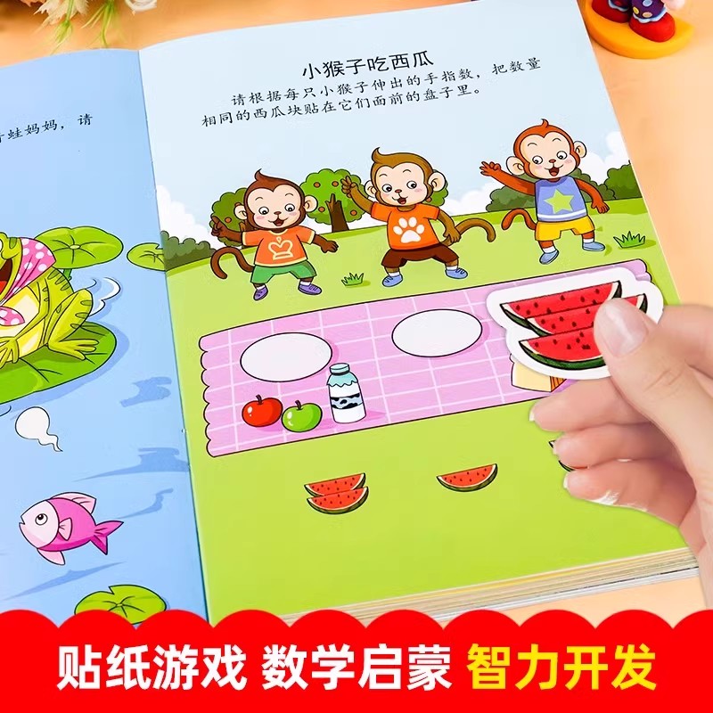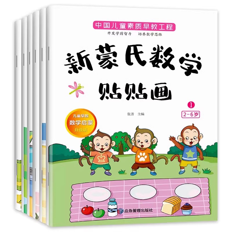 新蒙氏数学贴贴画全套6册2 6岁宝宝数字益智启蒙早教趣味游戏贴纸图画书幼小衔接儿童专注力启蒙左右脑开发思维逻辑训练卡通粘贴书