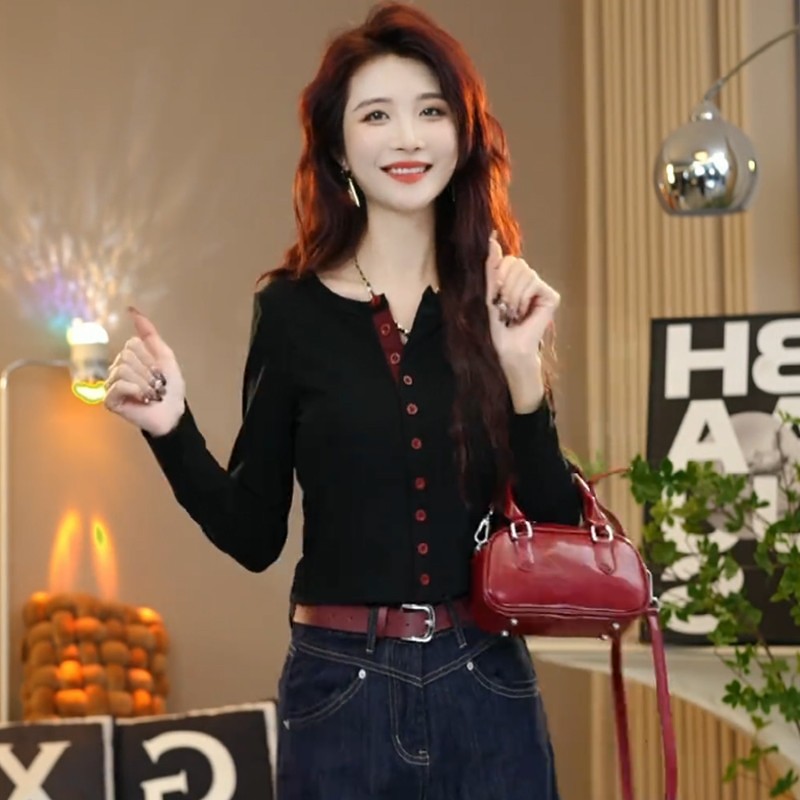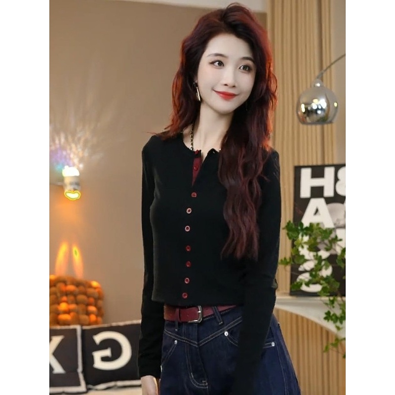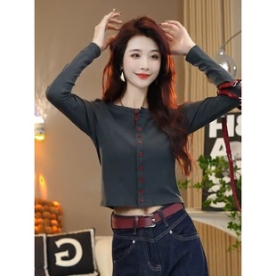 小个子圆领内搭打底衫 春秋冬薄款 显瘦短款 收腰t恤女长袖 上衣 修身
