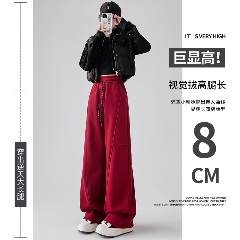 运动香蕉裤 弯刀阔腿裤 加厚高腰休闲慵懒风美式 冬季 子 女2025春秋款