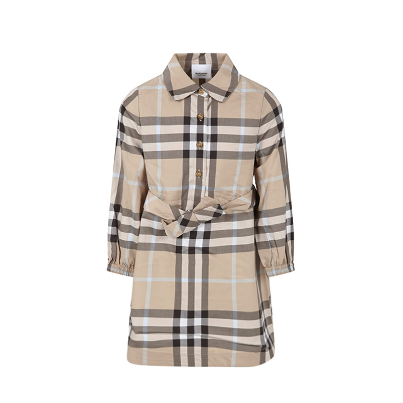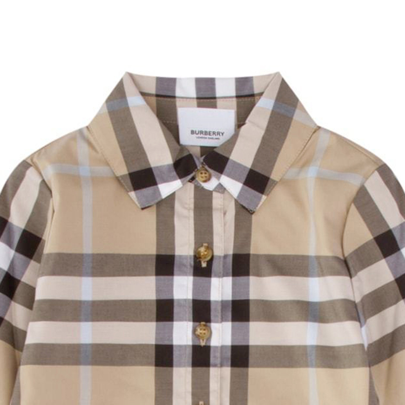 自营 格纹棉质系腰衬衫 Burberry 米色经典 裙长袖 博柏利童装