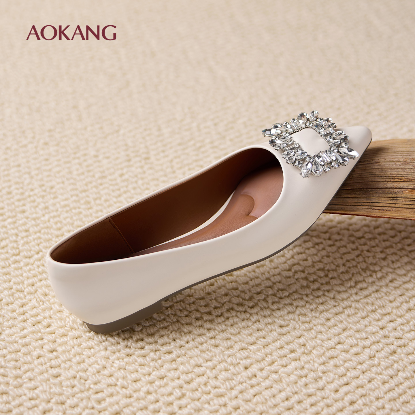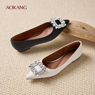 女鞋 平底鞋 2025秋季 气质尖头水钻方扣通勤OL时尚 浅口单鞋 奥康