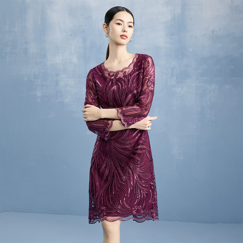 玫瑰裙法式 珂莱蒂尔2025秋新乔欣同款 蕾丝连衣裙 免2倍定金