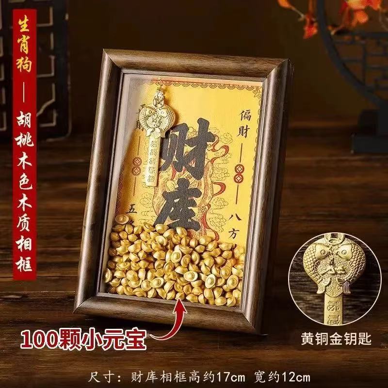 2025开金库黄财神财库相框客厅办公室工位摆件十二生肖金钥匙貔貅