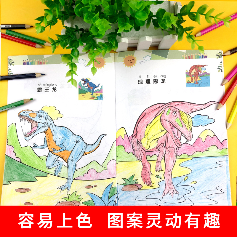 恐龙涂色画本儿童diy宝宝填色汽车画画本图画书绘画本描画册玩具