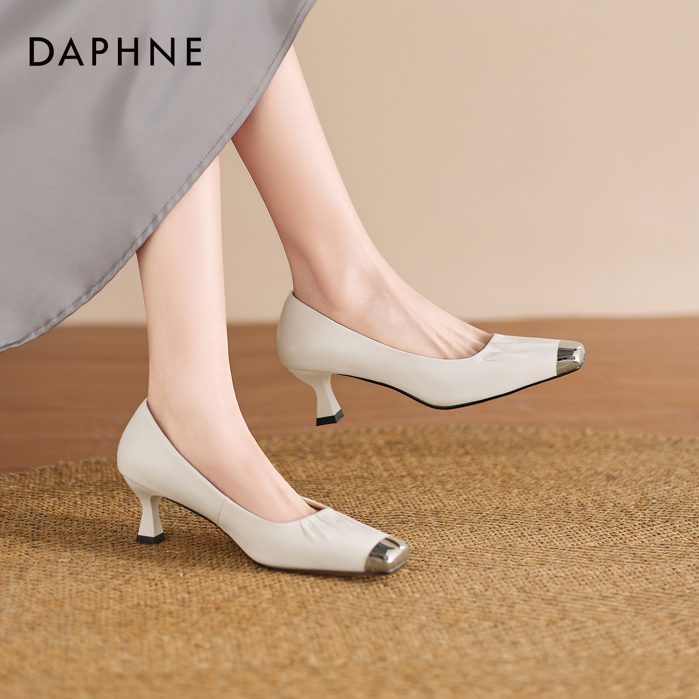 通勤职业面试女鞋 达芙妮黑色高跟鞋 细跟皮鞋 小猫跟单鞋 女2025新款