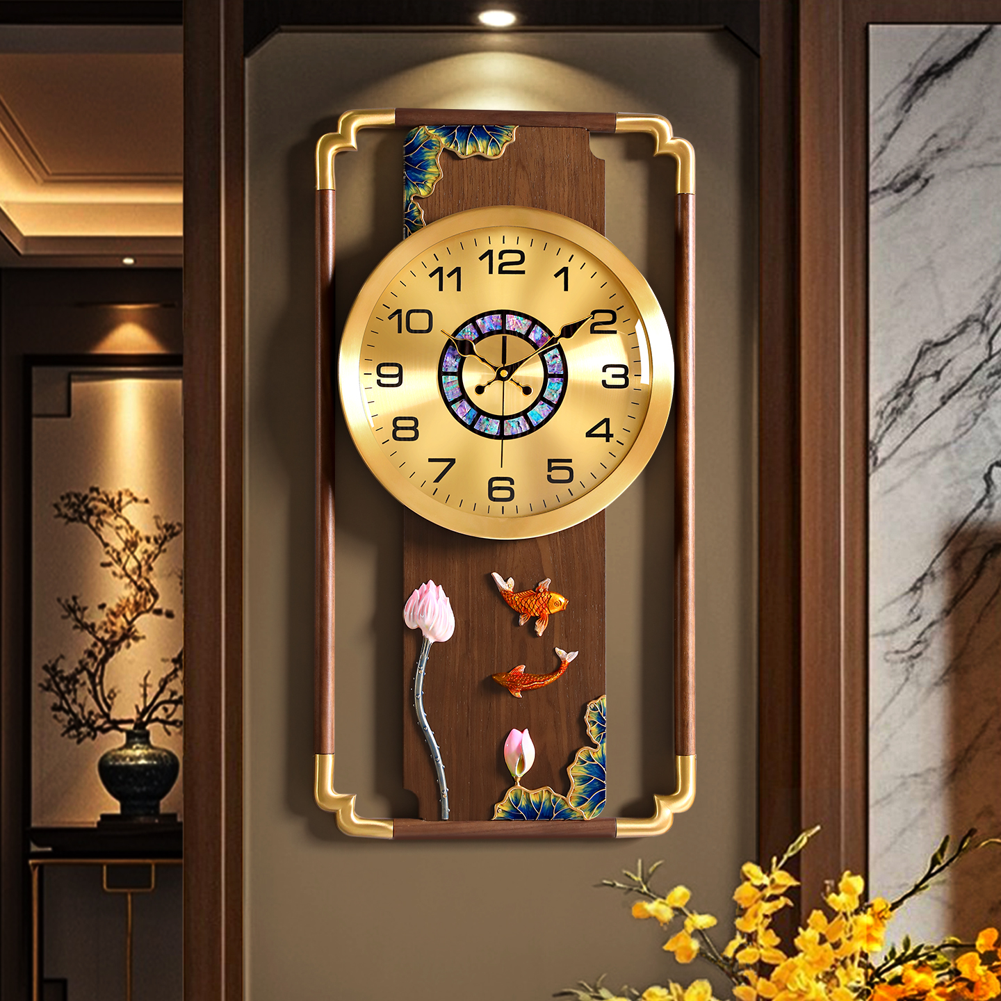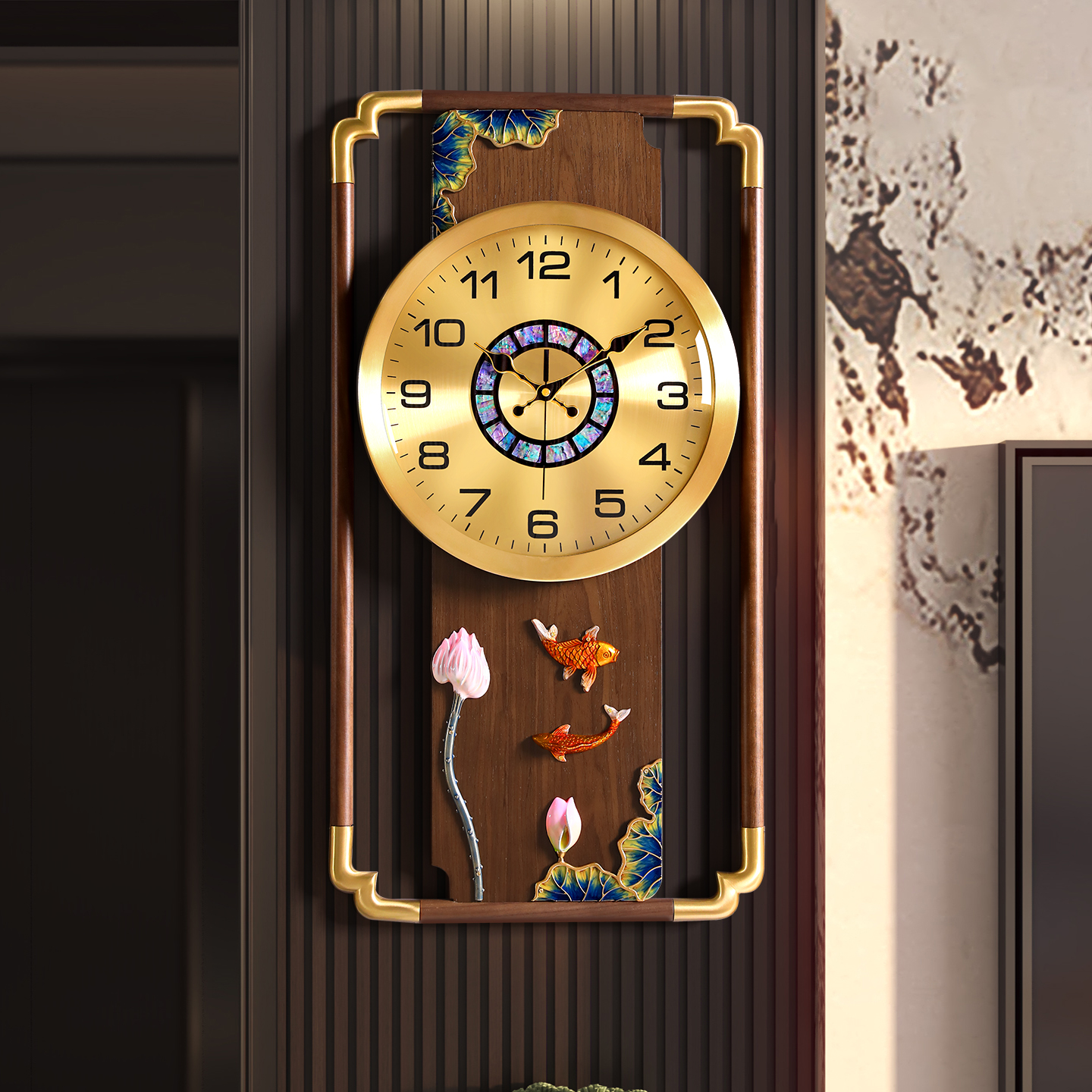 轻奢复古2025新款 静音挂墙时钟家用大气高端挂钟 客厅钟表新中式