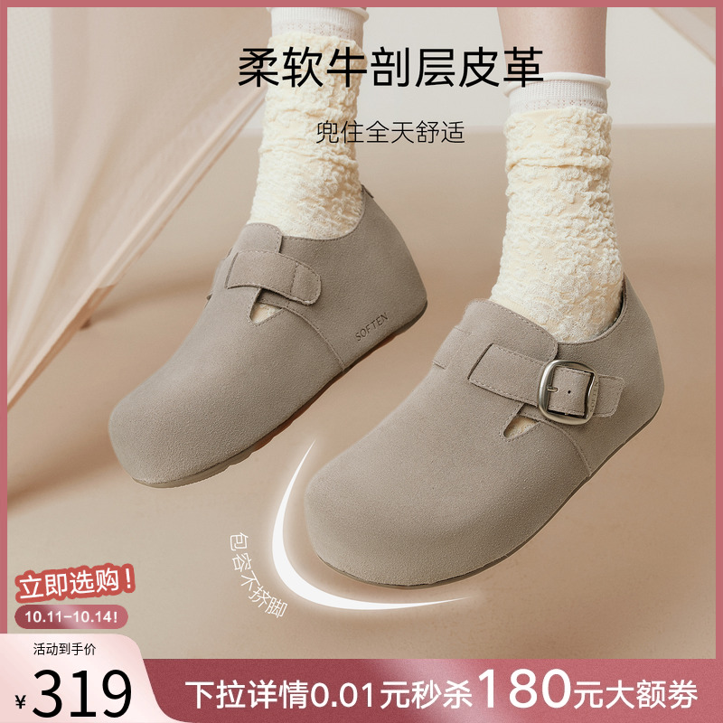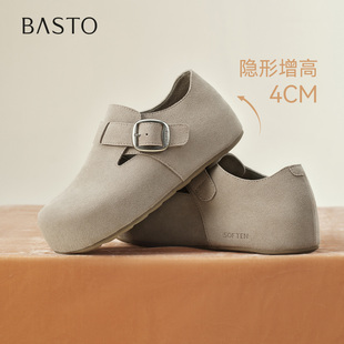 真皮全包厚底勃肯鞋 商场新款 百思图25秋季 增高女单鞋 香草慕斯