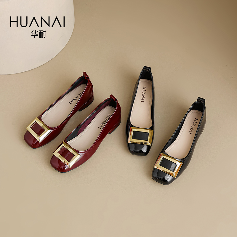 浅口红色小香风通勤鞋 华耐粗跟单鞋 百搭女鞋 春秋法式 子 女2025新款