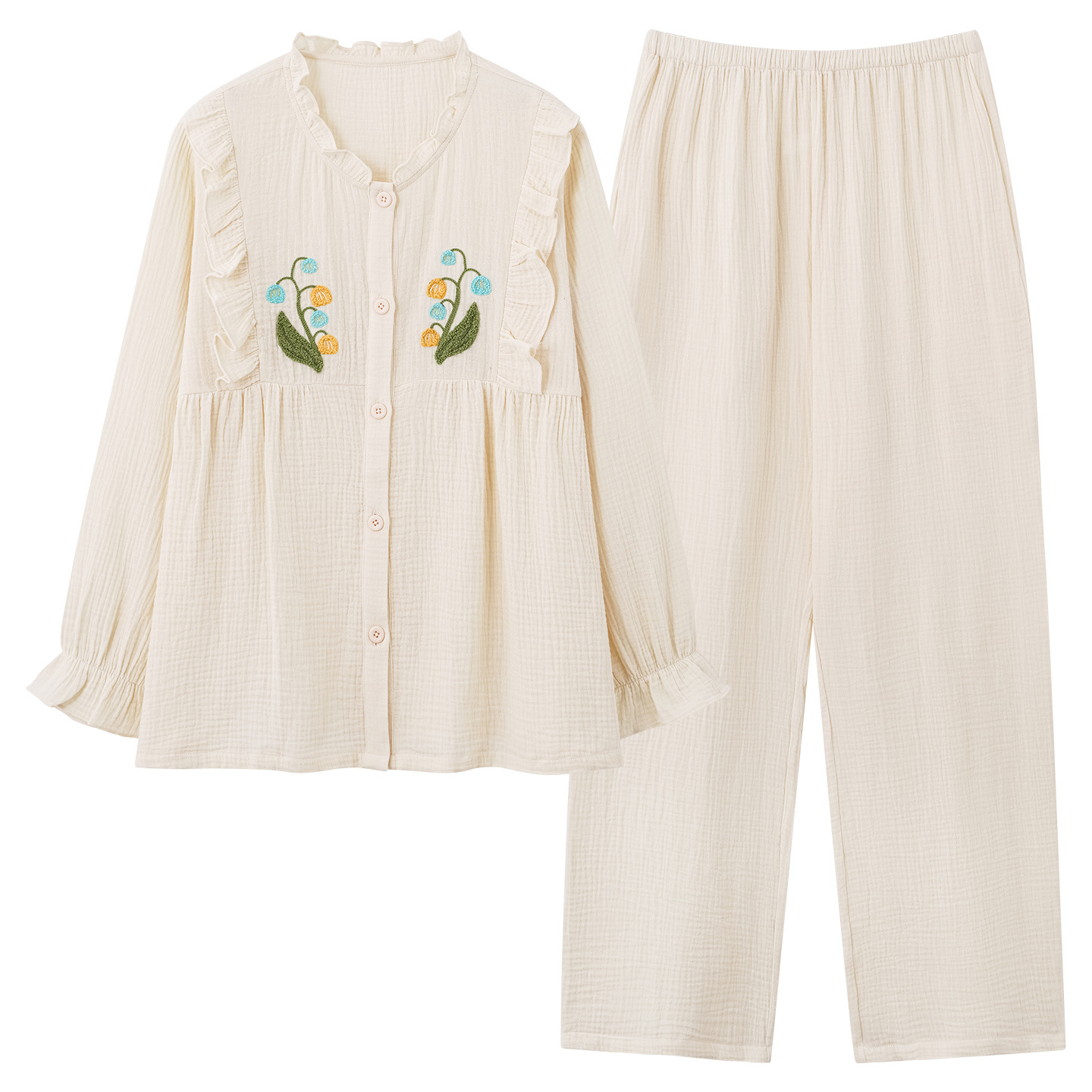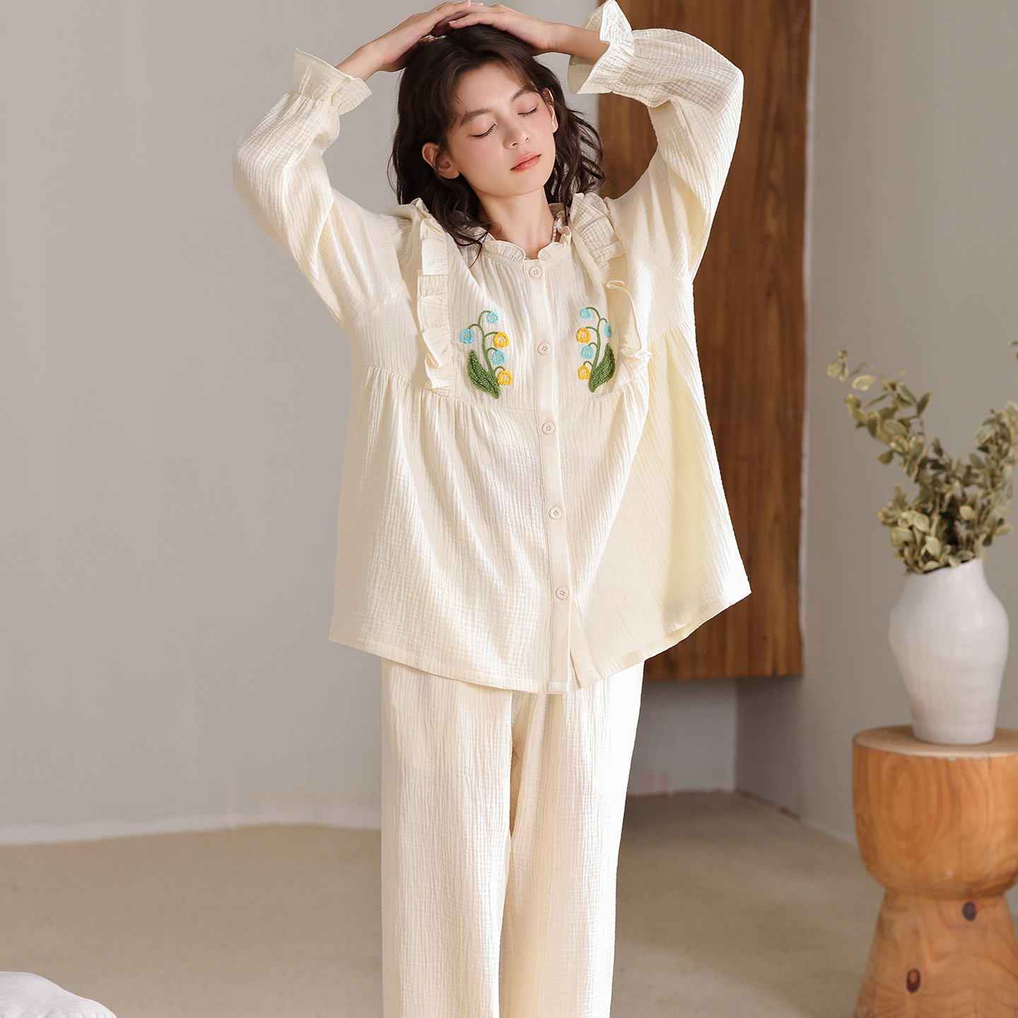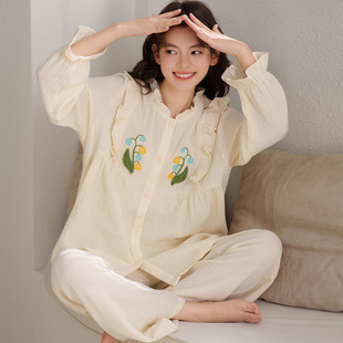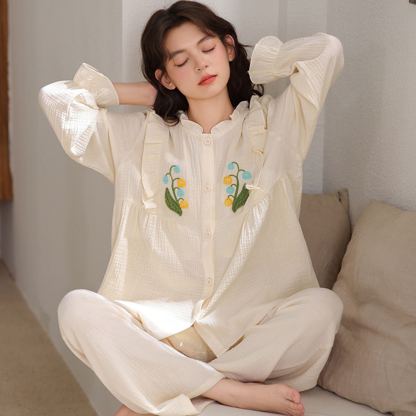 女士2025新款 芬腾睡衣女款 套装 纯棉长袖 可爱休闲全棉家居服 春秋季