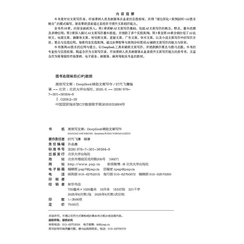 2025新书 北京大学出版 高效写文案 时代飞鹰 社9787301361849 DeepSeek辅助文案写作 正版