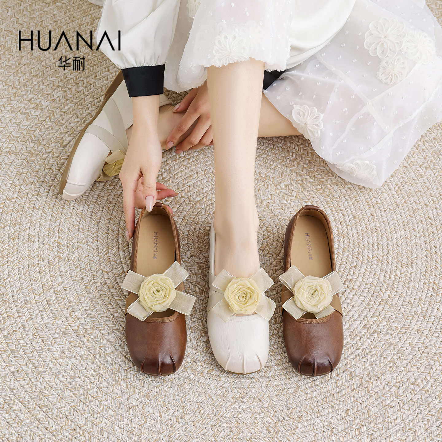 春秋平底不累脚内增高花朵单鞋 华耐复古玛丽珍芭蕾舞鞋 女2025新款