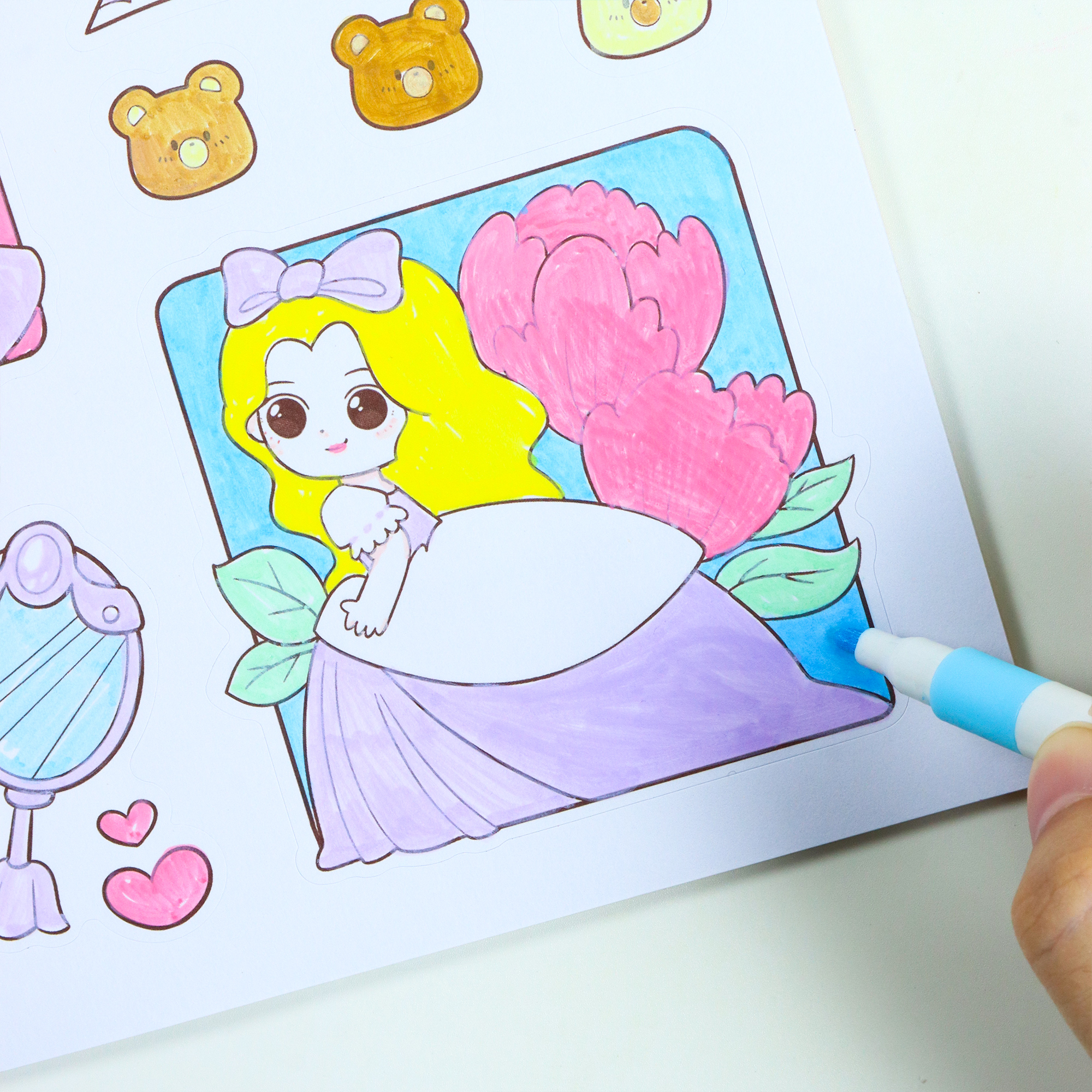 公主涂色贴纸儿童手工diy免裁剪涂鸦本女孩涂色本粘贴画