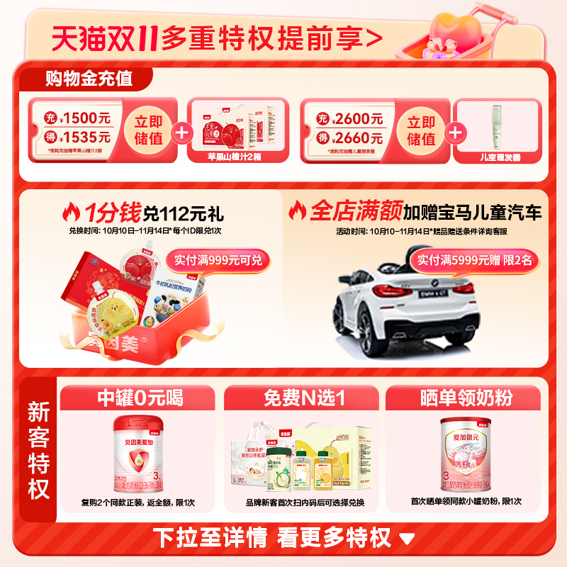 婴儿羊奶粉3段800g低敏羊乳易吸收DHA 贝因美爱加御元 保价双11