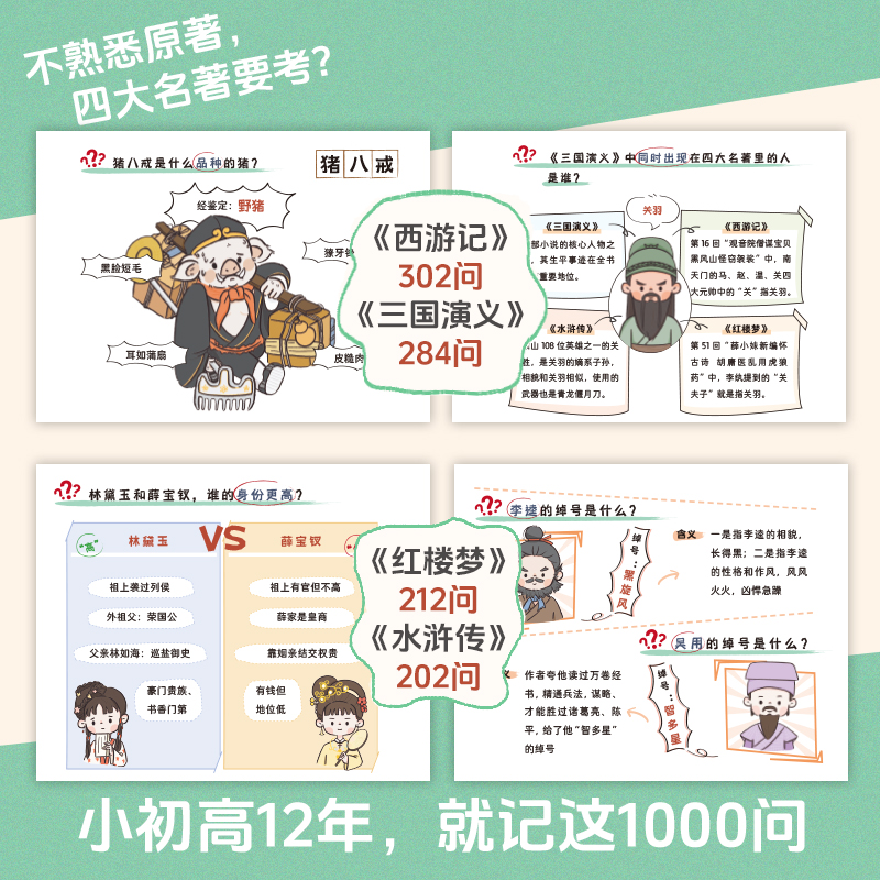 趣味解读核心必考知识点西游记水浒传三国演义红楼梦思维导图必考考点精练小学初中高中 开心四大名著1000问漫画版 当当网