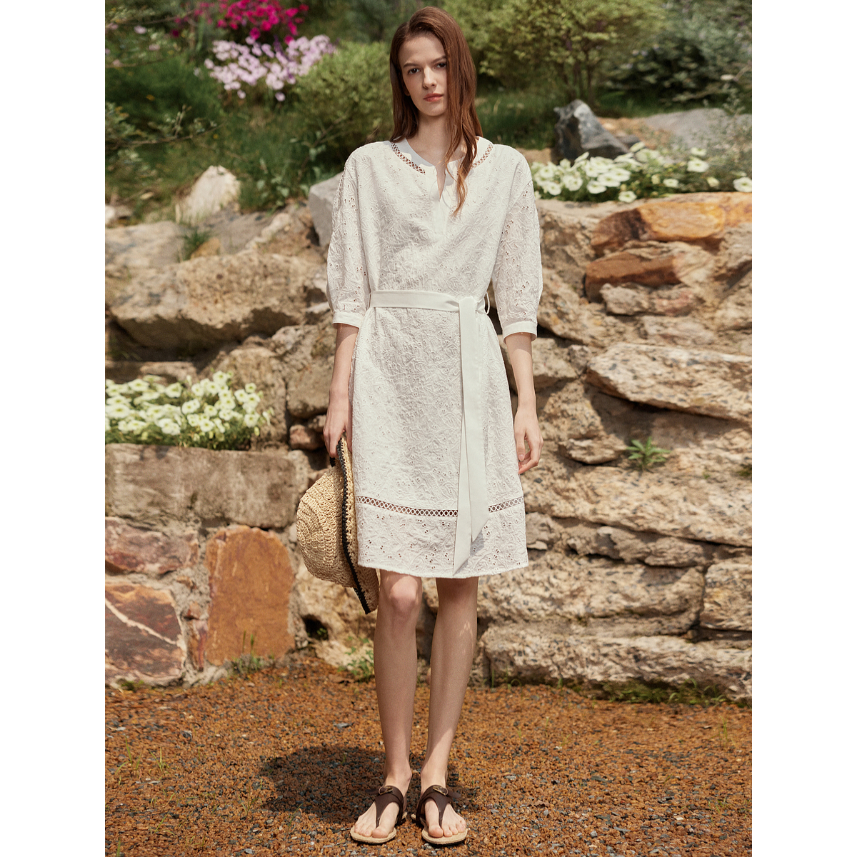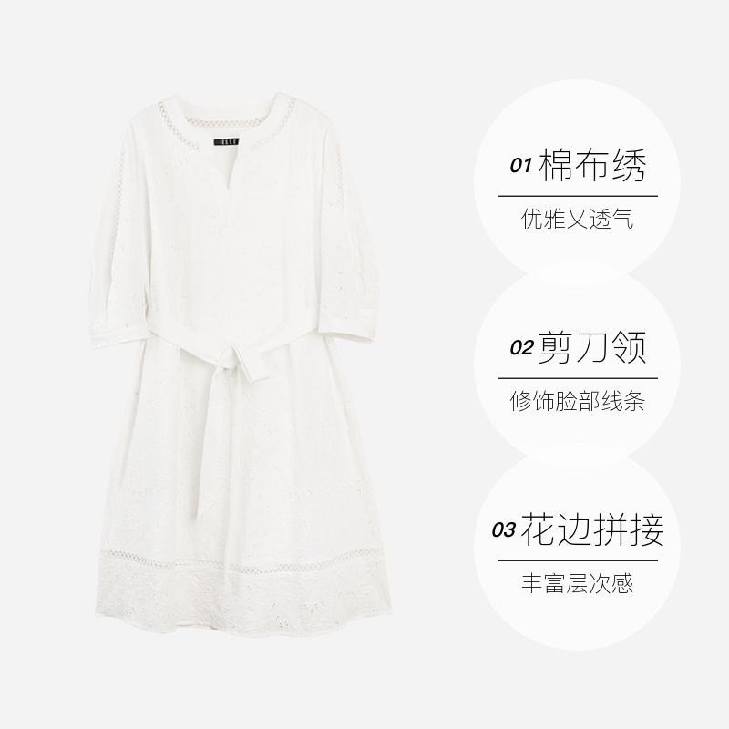 气球裙LILY2025法式 腰带白色蓬蓬裙连衣裙女 垂感气质插肩灯笼袖