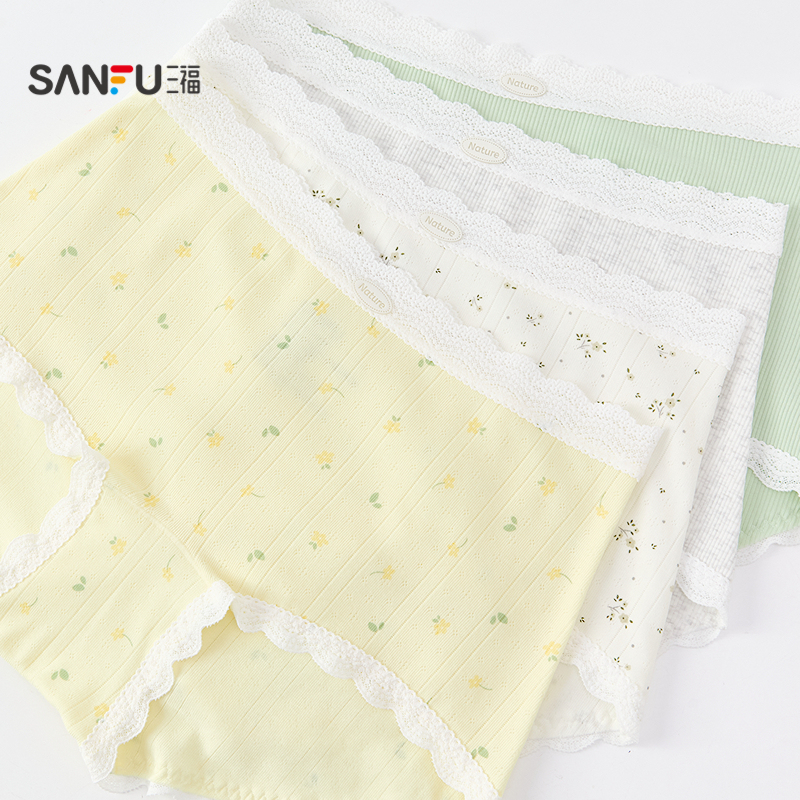 三福女中腰不夹臀内裤 女470522 贴边无痕轻薄舒适半平角裤