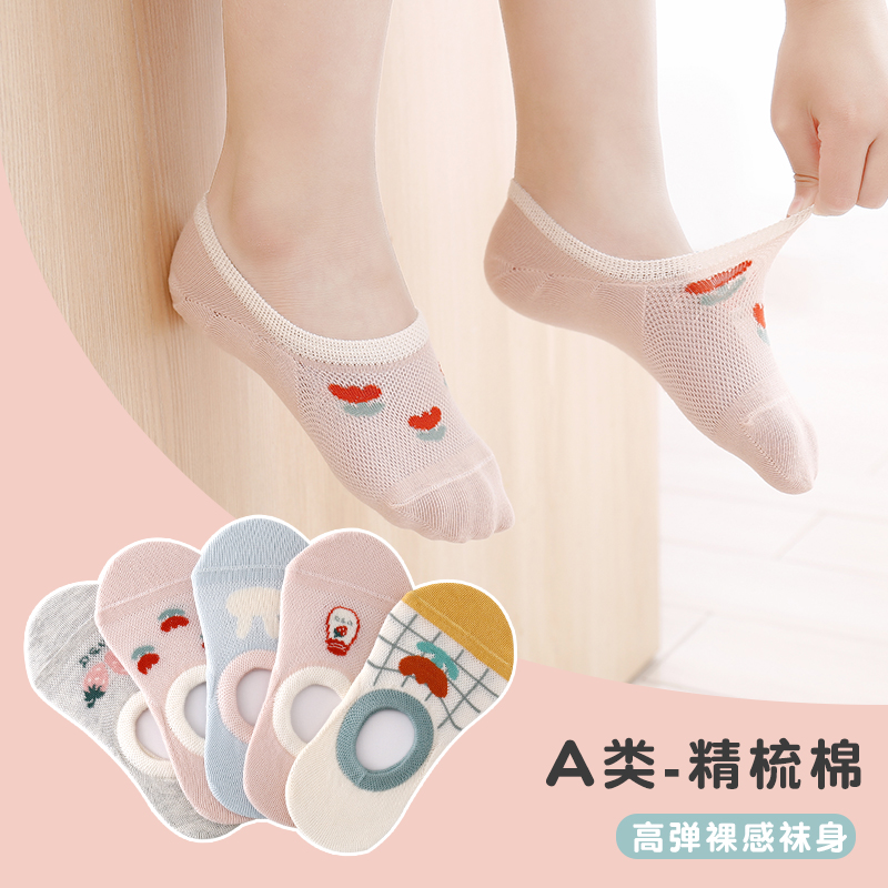 六指鼠儿童袜子女童女宝宝纯棉卡通网眼春夏款 中大童 船袜透气薄款