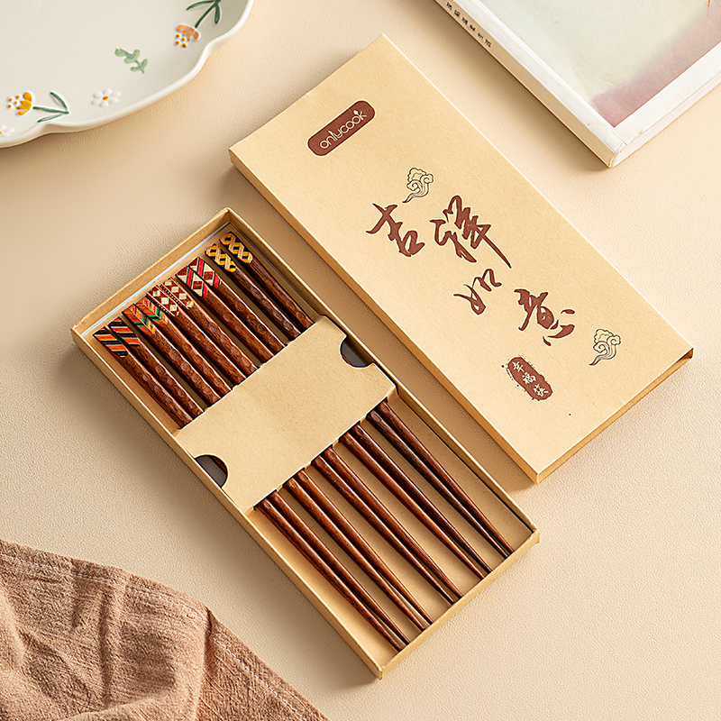 双枪非洲花梨木筷子家用无漆无蜡抗菌防滑防霉耐高温家庭装