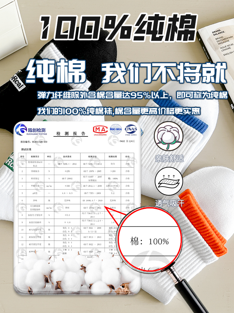 纯棉防臭吸汗男童初中学生大童运动男款 青少年袜子男士 中筒秋冬季