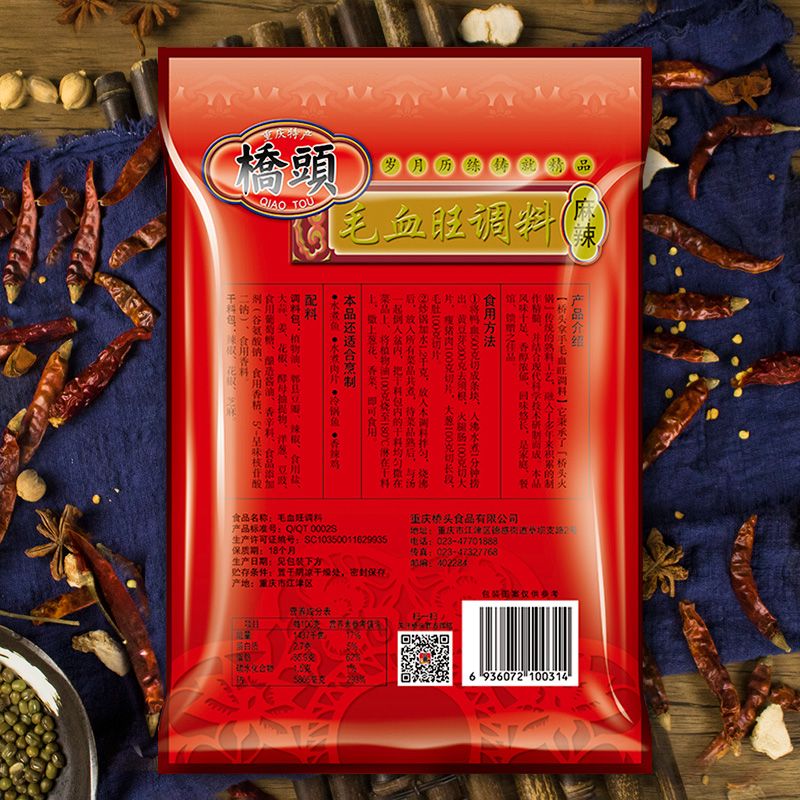 桥头麻辣毛血旺调料160g麻辣烫水煮肉片家用调料重庆特产料包香辣