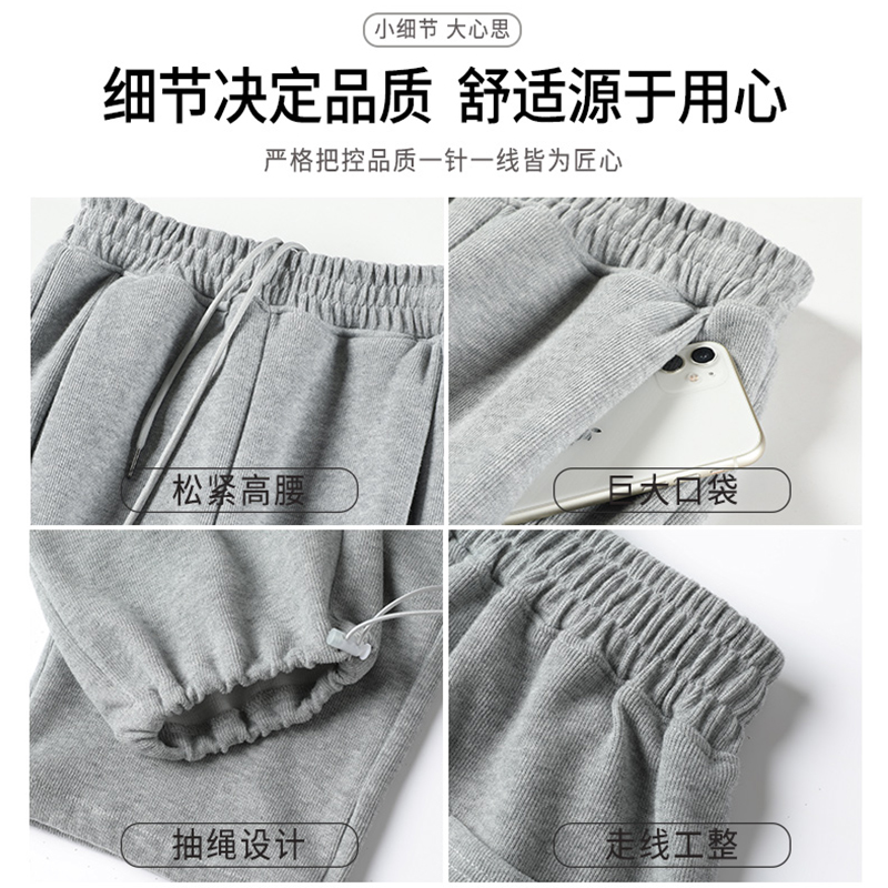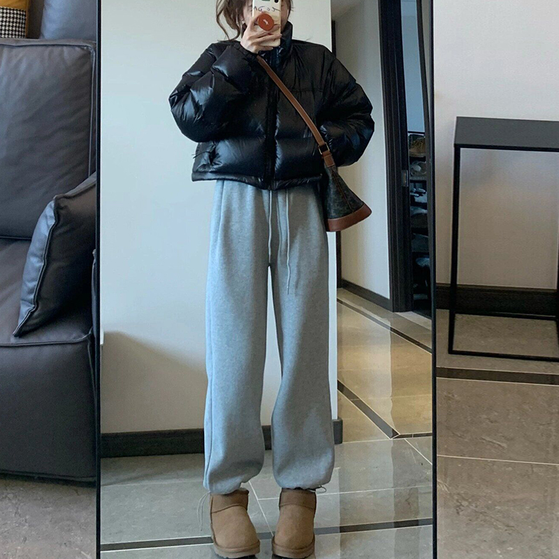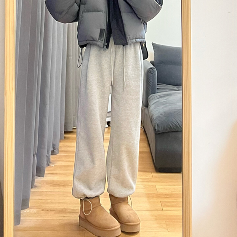休闲显瘦卫裤 春秋冬加绒直筒宽松阔腿美式 女2025新款 白灰色运动裤