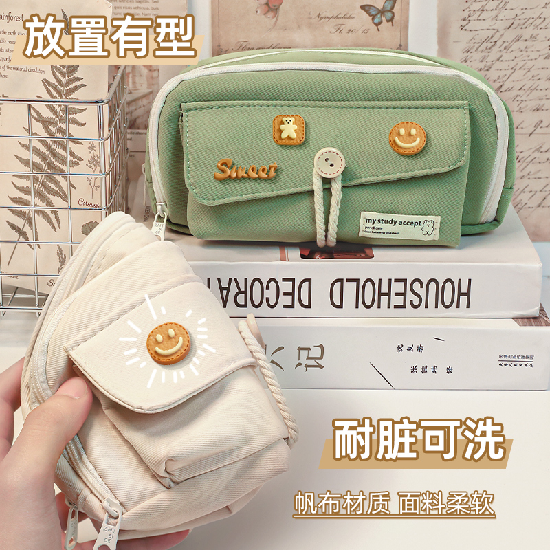 笔袋ins日系帆布高颜值小众透明简约糖果色新款 never巨能装 无忧 一年级笔袋男孩小学生女孩学习用品 正品