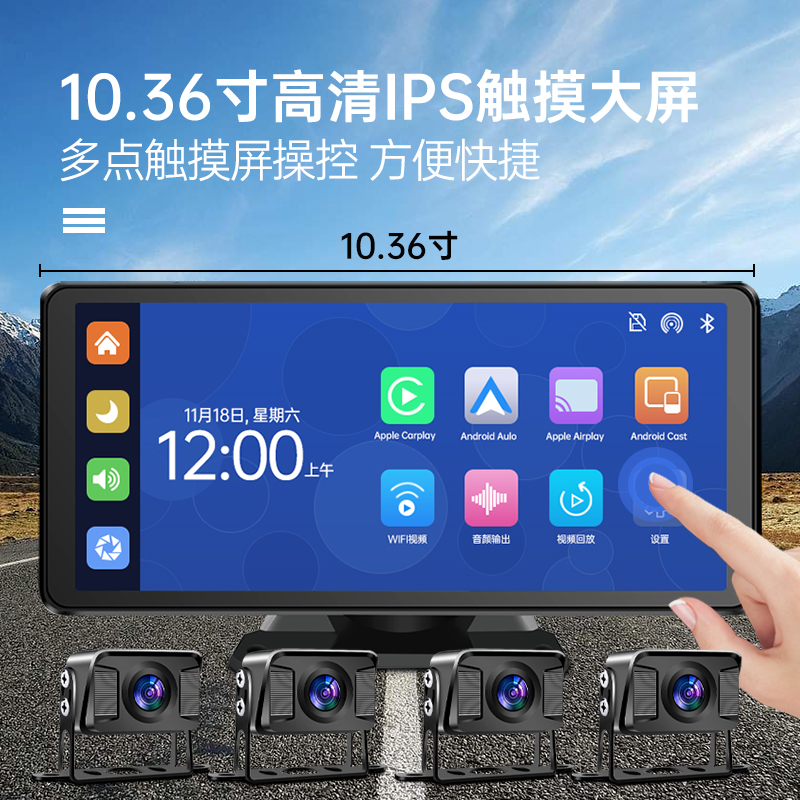 货车行车记录仪四路监控无线手机互联导航一体机车载智慧屏12v24v
