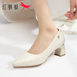 单鞋 羊皮浅口法式 千百度粗高跟鞋 异形跟职业通勤大码 静音系列
