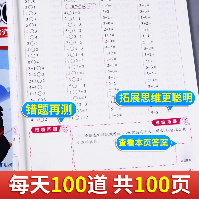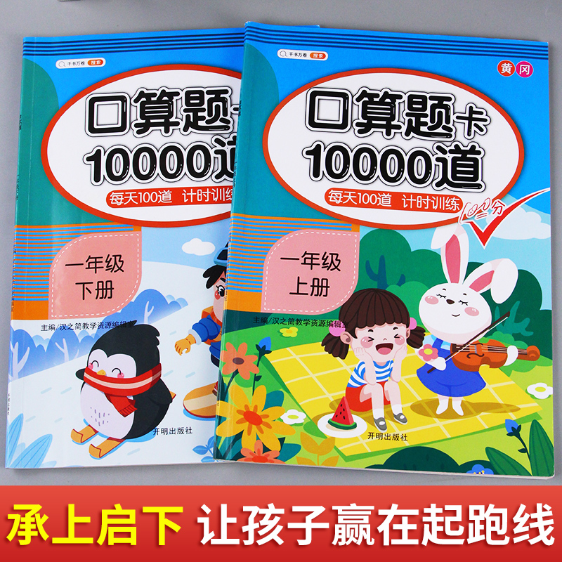 小学一年级上册下册口算题卡10000道全套2本人教版 20以内加减法心算速算100道计算题 1年级每日100题数学思维同步训练口算天天练10