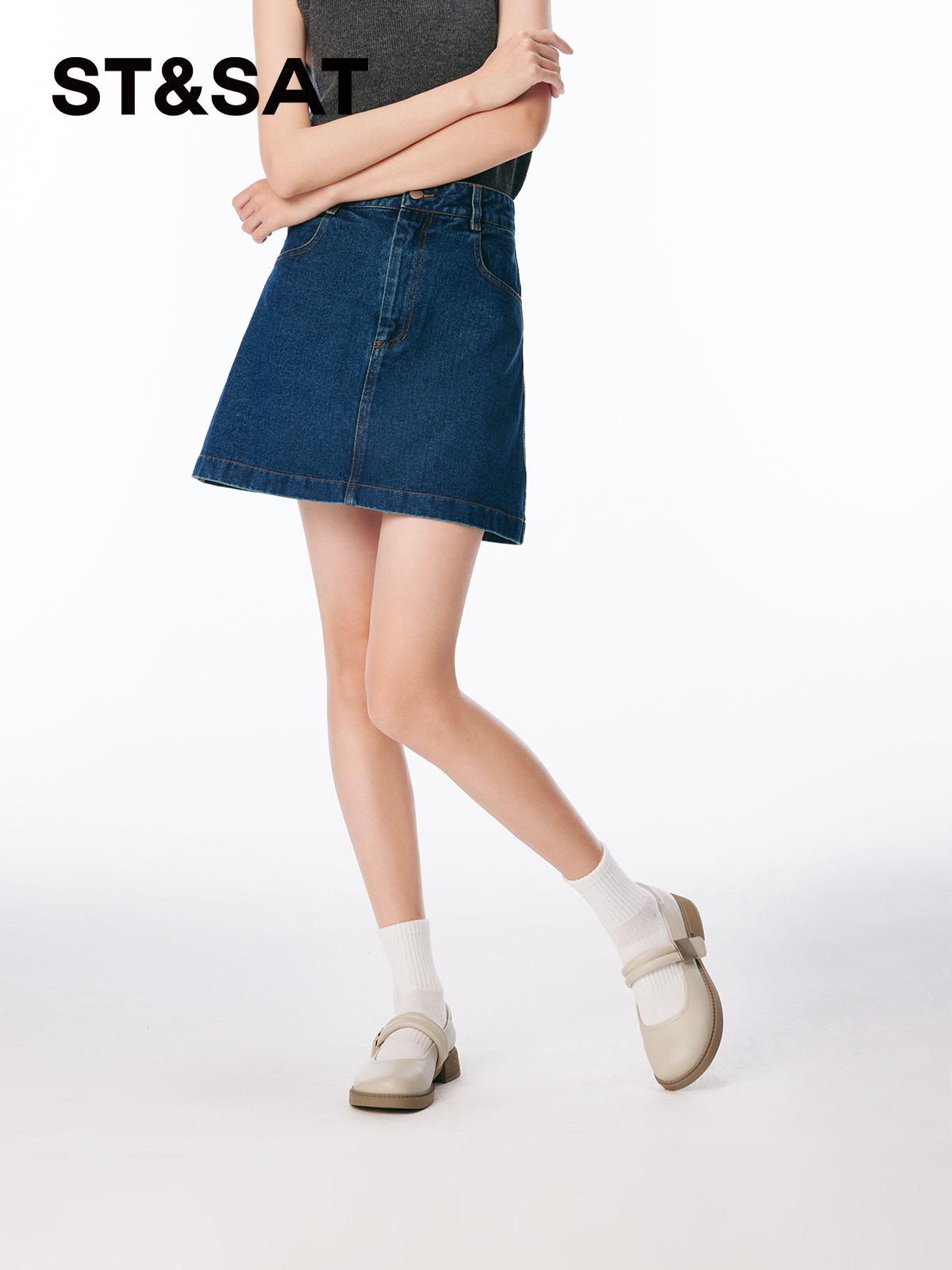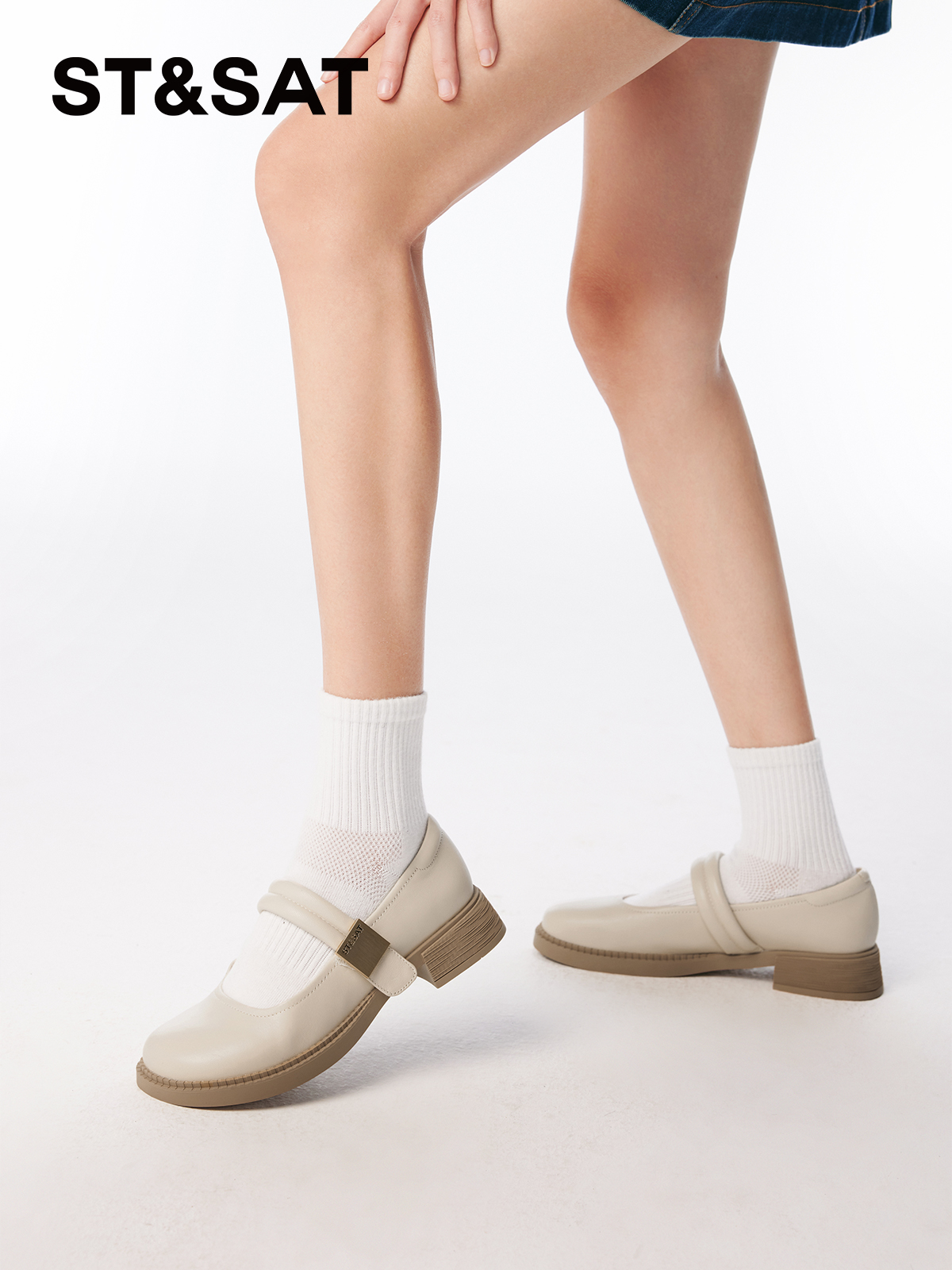 中跟学院风休闲黑色皮鞋 新款 女SSC1111072 春季 星期六浅口单鞋