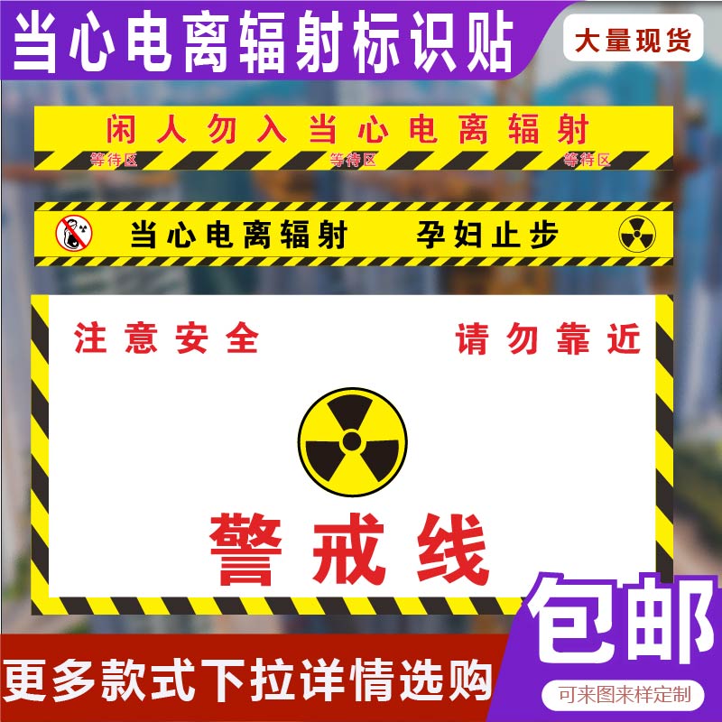 当心电离辐射标识贴红灯亮时请勿靠近停留注意安全请在黄线外排队等候警戒线拍片室地贴放射科CT室警戒线