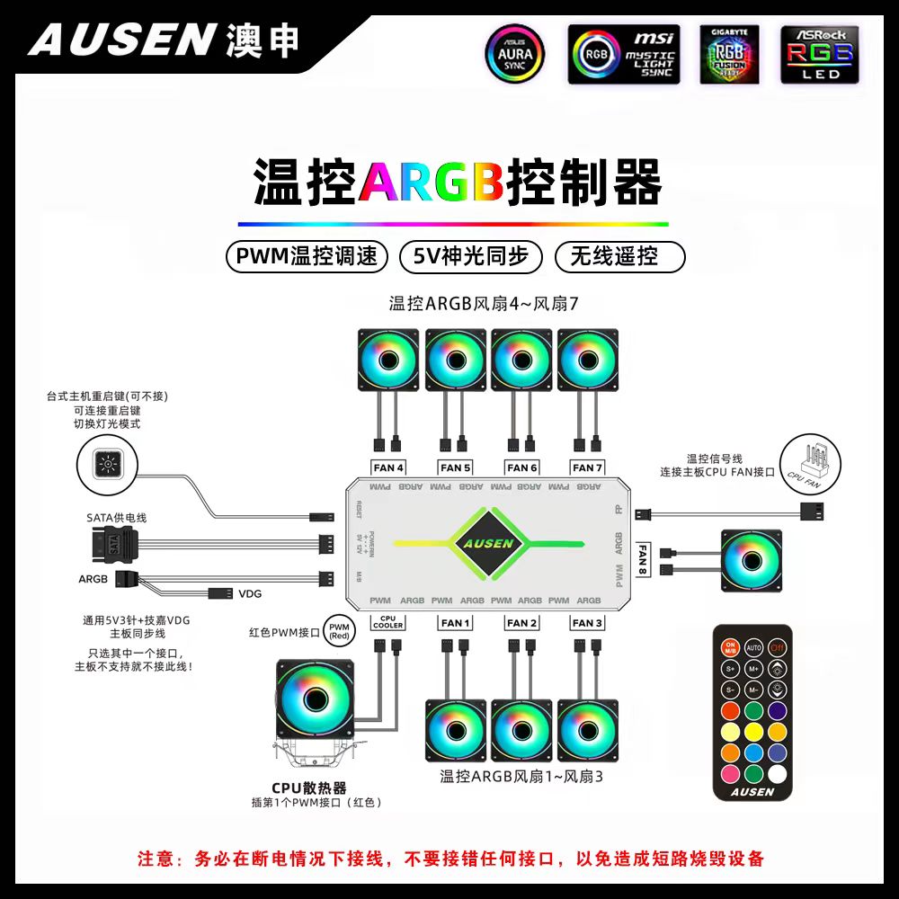 电脑机箱风扇ARGB控制器PWM温控集线器5V三针神光同步镜面二合一