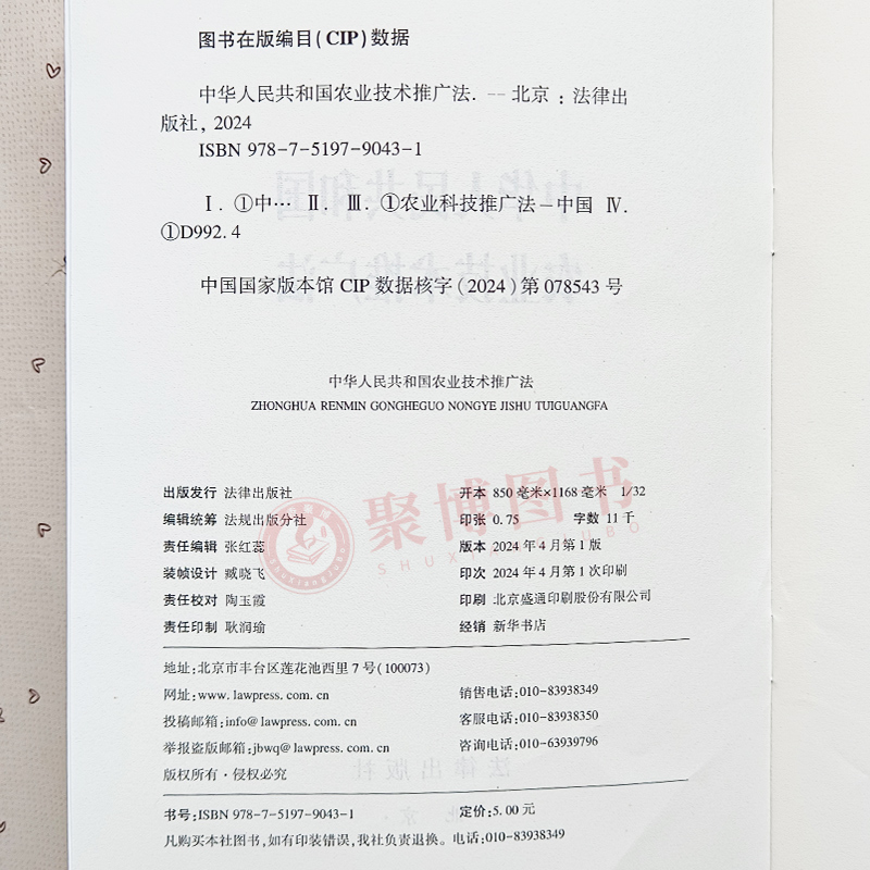 中华人民共和国农业技术推广法 法律出版 32开 农业技术推广与应用推广保障措施 社 法律法规条文单行本工具书 2024新修版