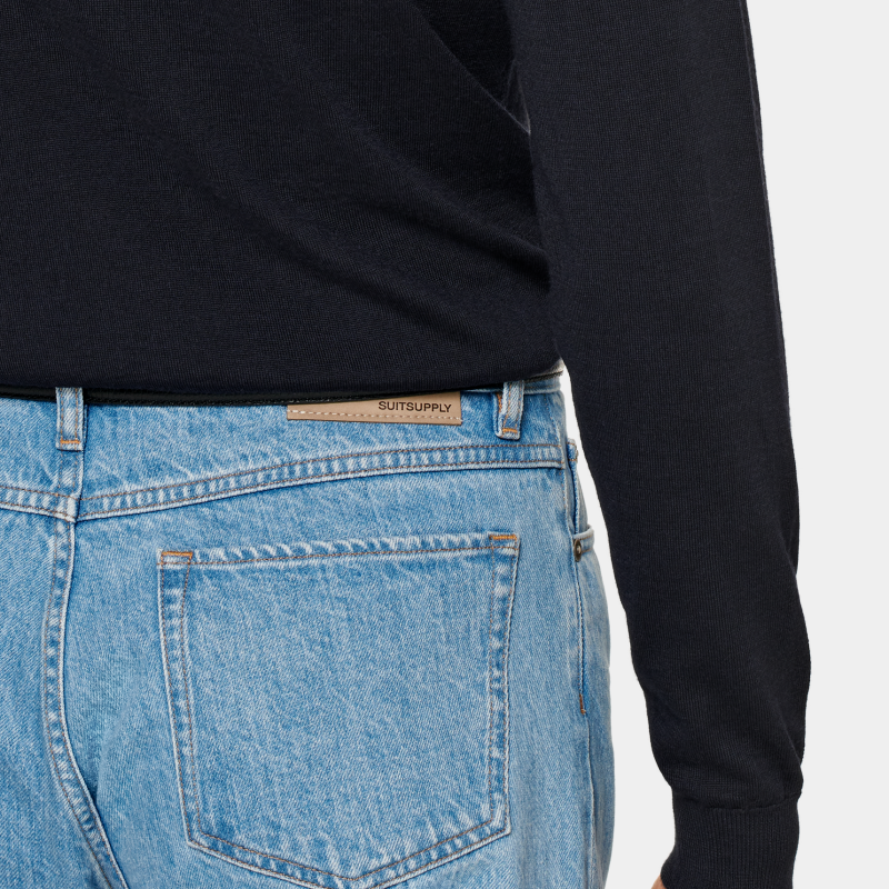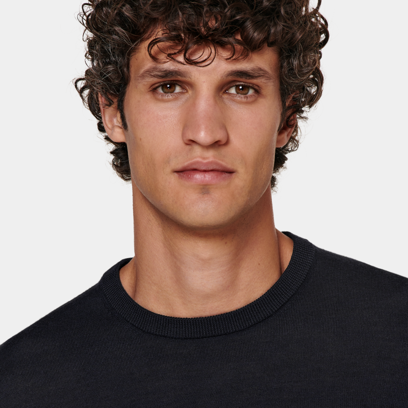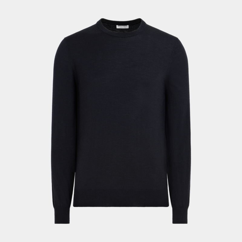 SUITSUPPLY秋藏青色美利奴羊毛圆领长袖 针织衫