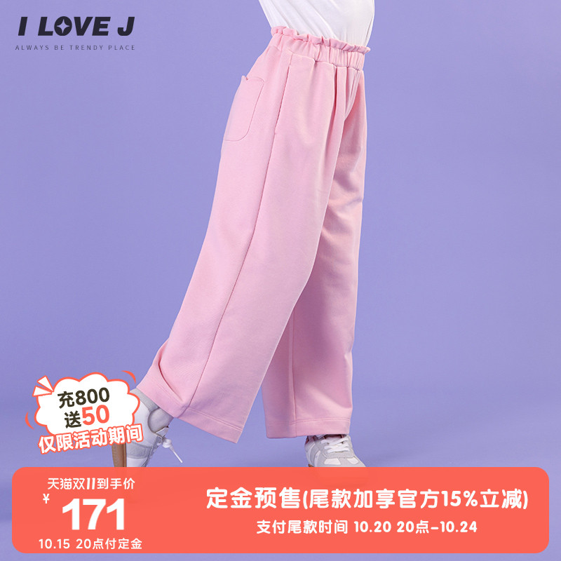 子 ILOVEJ童装 休闲宽松长裤 女童浅粉色运动裤 JWFPT10 2025秋季