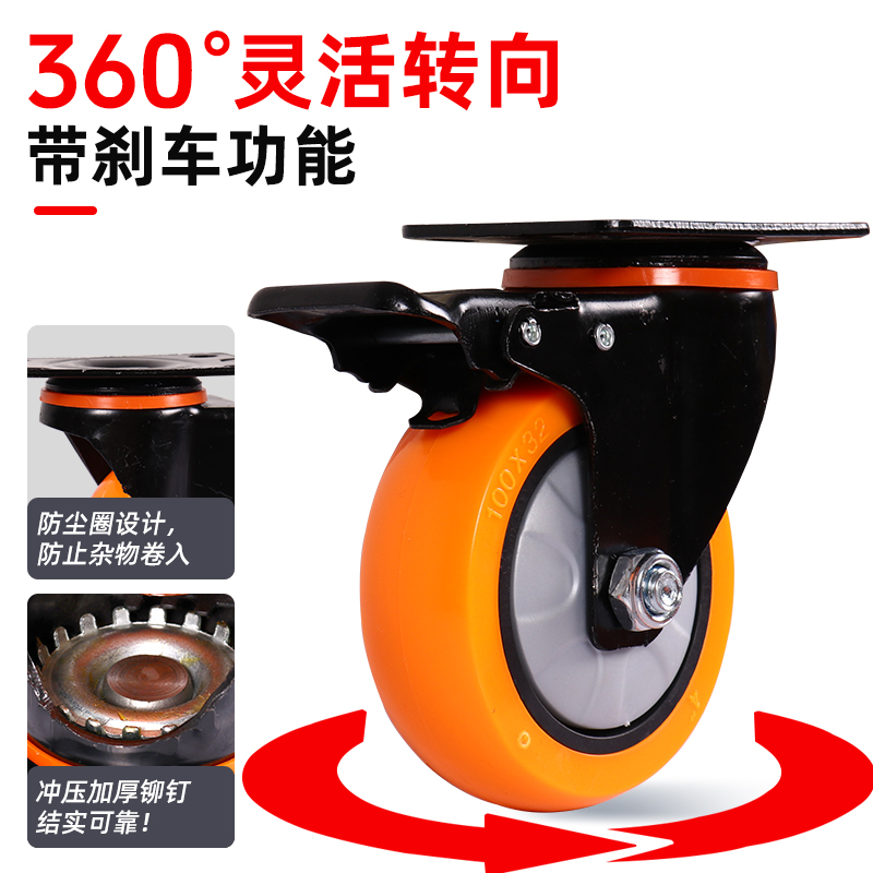 脚轮万向轮刹车轮聚氨酯定向轮轴承式 推车脚轮耐磨3寸4寸5寸轱辘