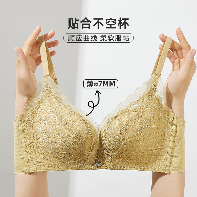 好奇蜜斯蕾丝小胸聚拢内衣女纯欲文胸罩套装 大胸显小防下垂薄性感