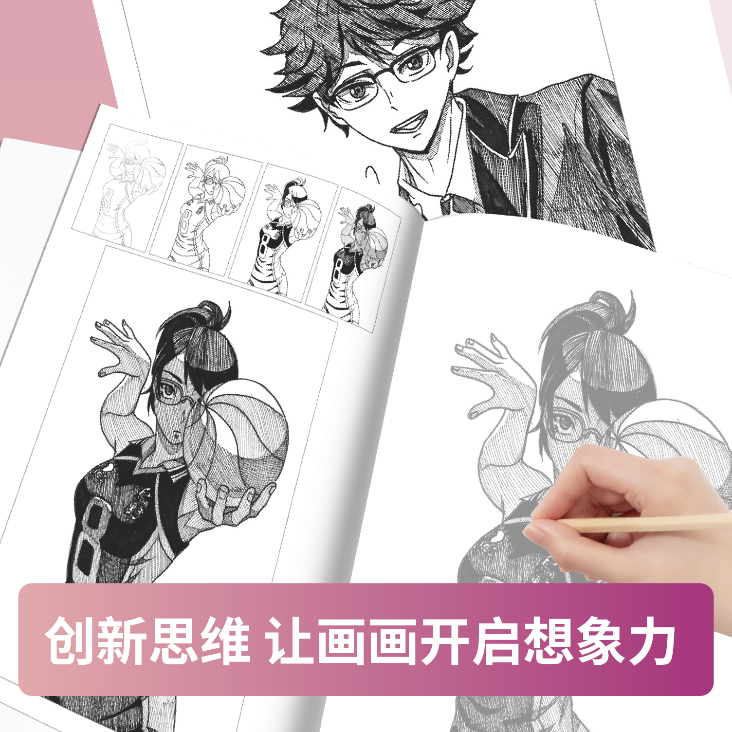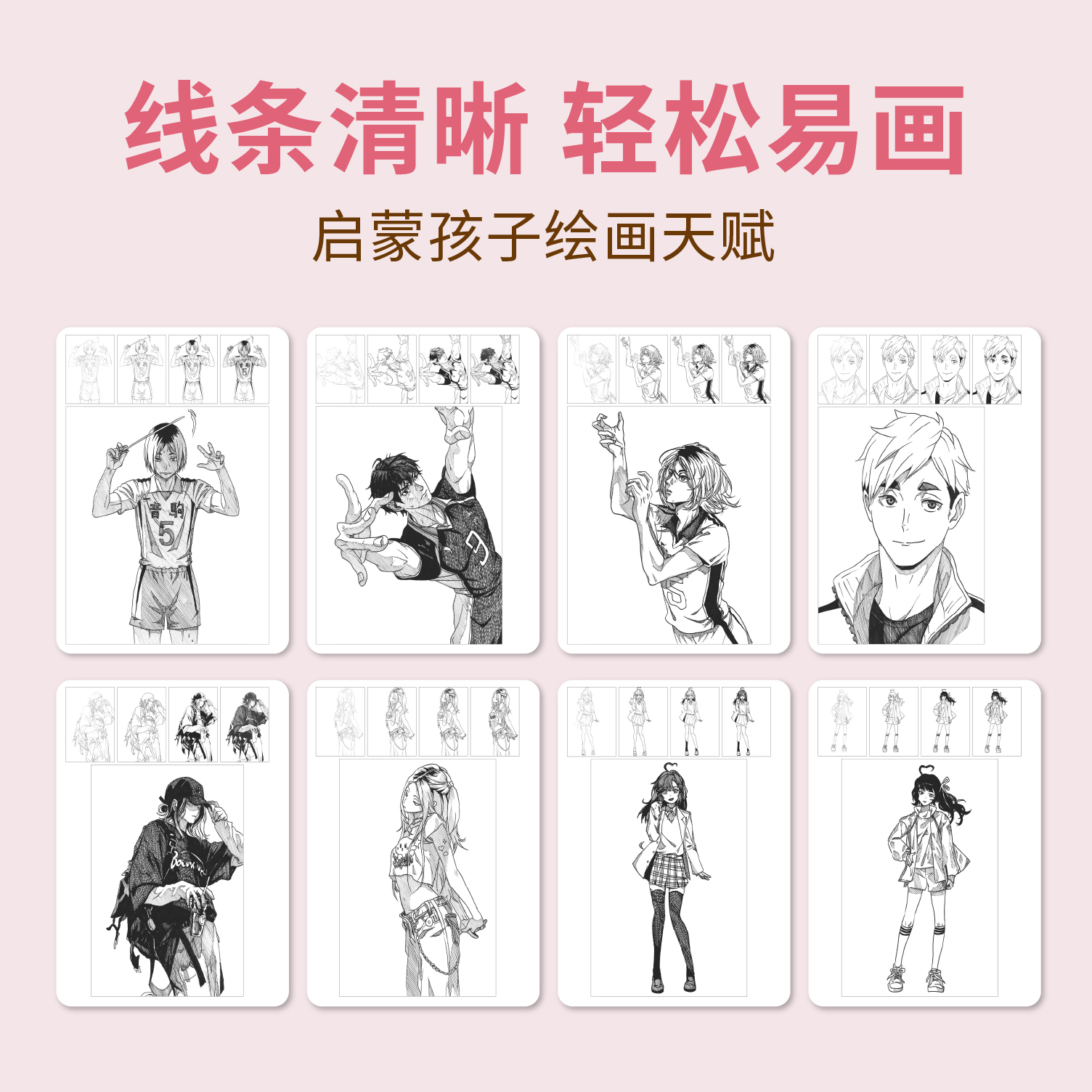 排球少年男生女生描摹本图画本幼儿园专用涂鸦漫绘线描图画动漫人物控笔训练卡通儿童临摹画涂色入门画册画本