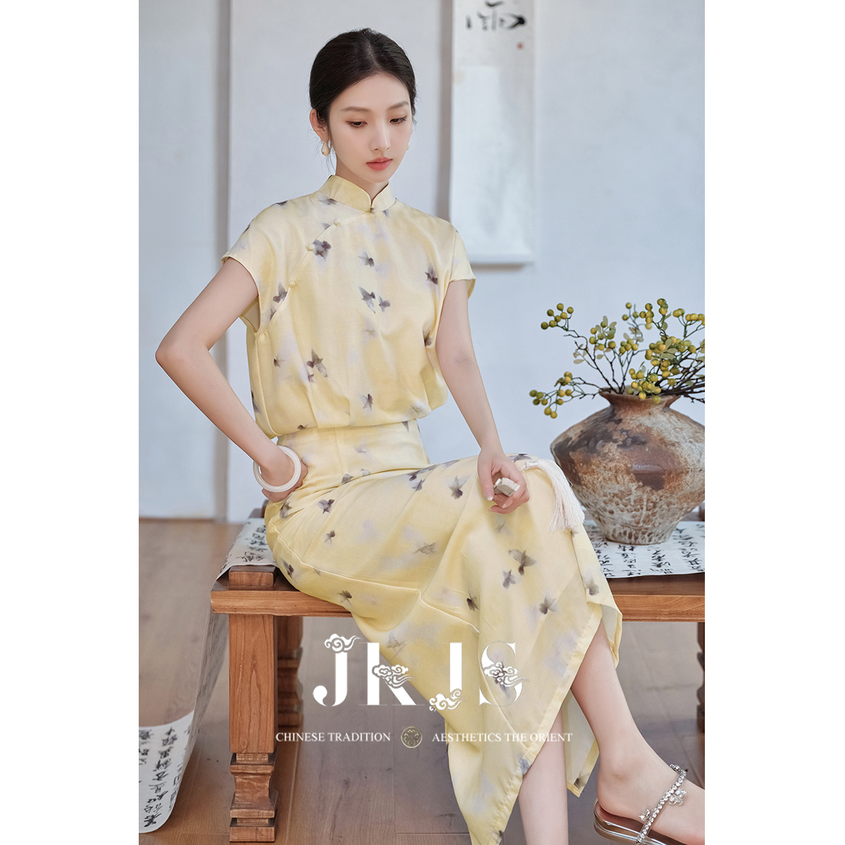 SNIDEL2025秋冬新品 印花茶歇连衣裙SWFO254139 优雅荷叶边小飞袖
