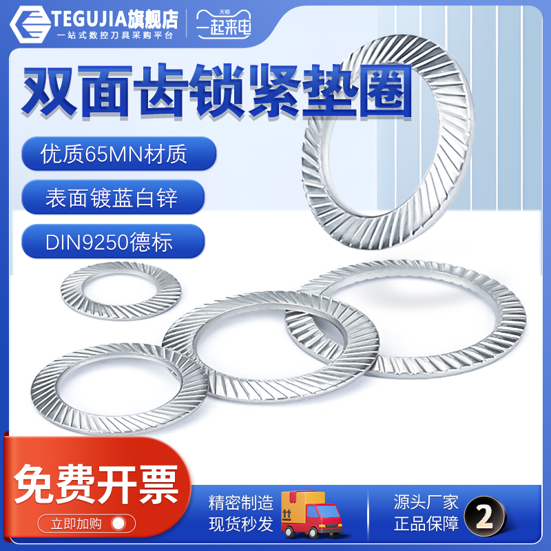 双面齿自锁防松垫圈65锰镀锌德标DIN9250螺丝垫片防滑垫片M3 M30