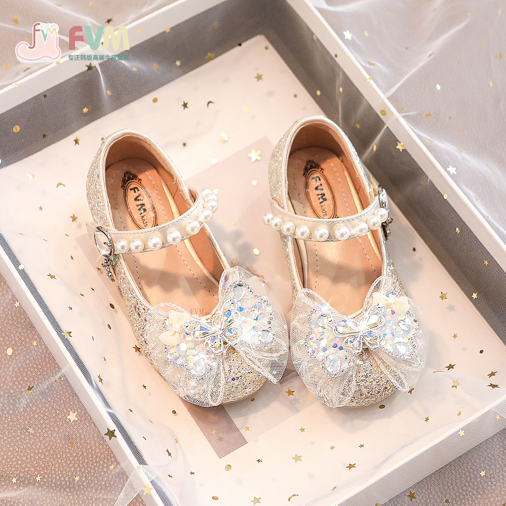 闪亮艾莎鞋 FVM女童鞋 新款 2025春秋款 配礼服 子儿童公主水晶小皮鞋