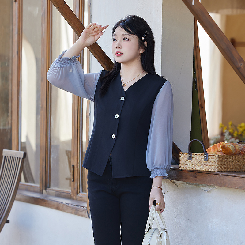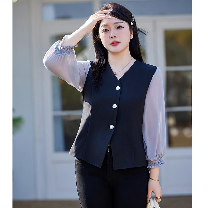 高级感小衫 2025秋装 胖mm开衩7分袖 气质V领收腰显瘦大码 上衣女 新款