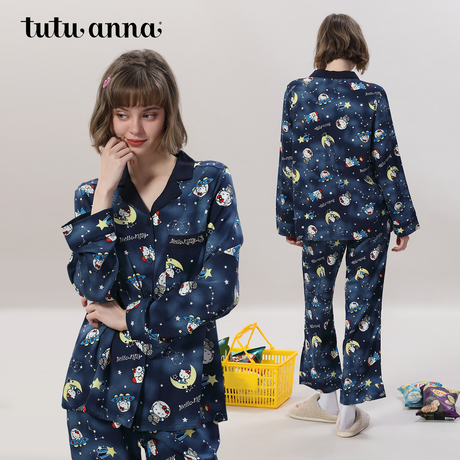 宽松加大码 猫人纯棉睡衣女春秋2025新款 套装 长袖 可外穿家居服 冬款