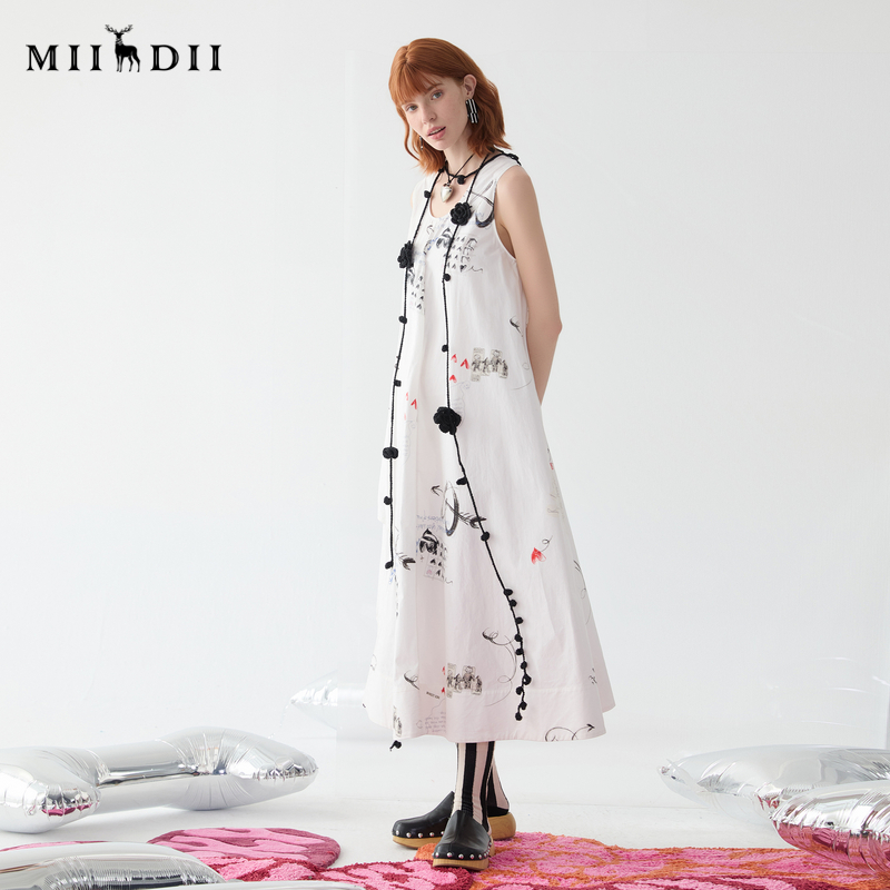 复古文艺风印花大摆裙长裙251ML0069 新品 谜底无袖 连衣裙2025春季