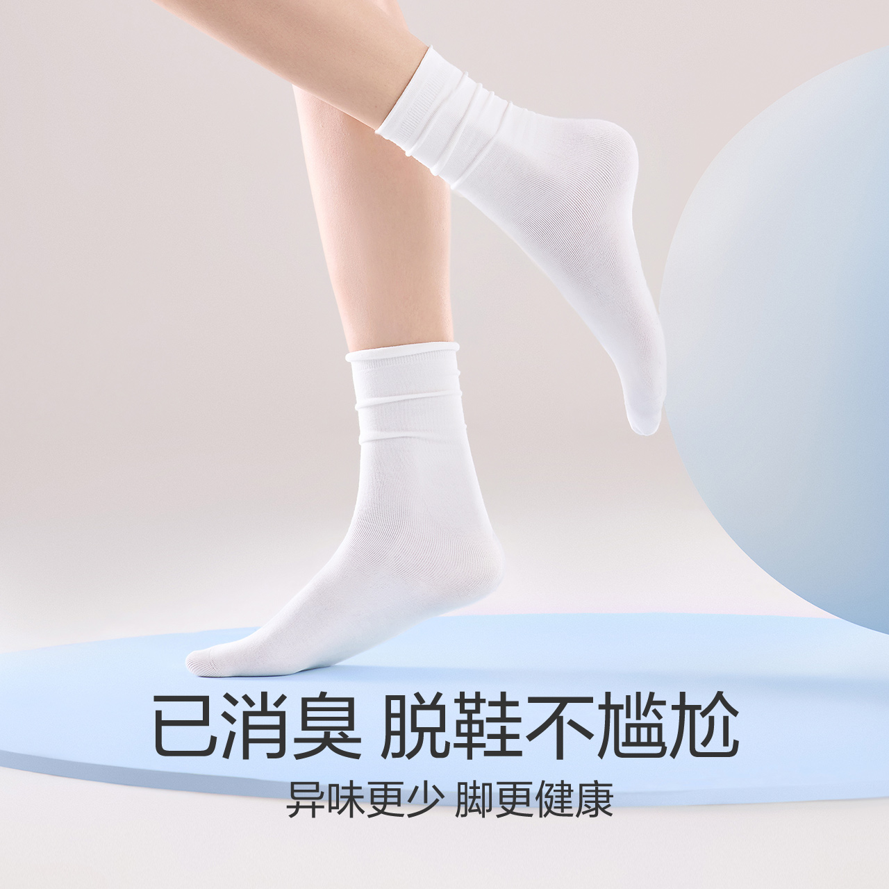 袜子女堆堆袜莫代尔中筒袜2025年春抑菌防臭透气白色长袜女士袜子