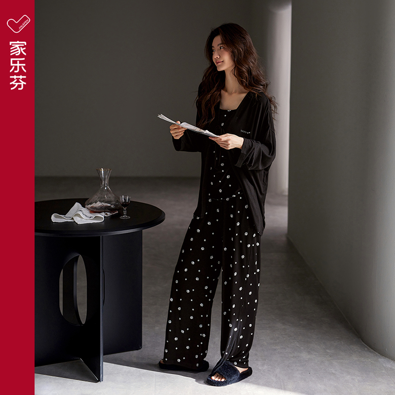 时髦假两件带胸垫套装 25年新款 柔软纯棉家居服长袖 秋冬季 睡衣女款
