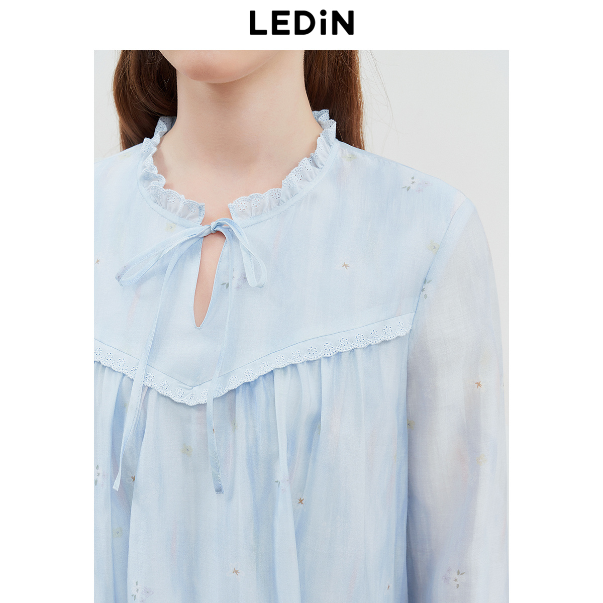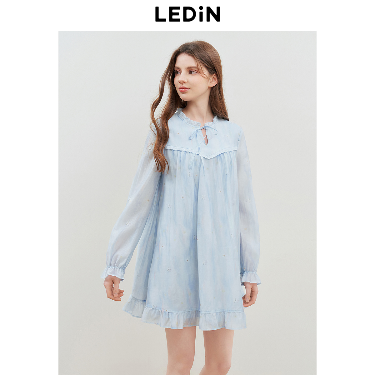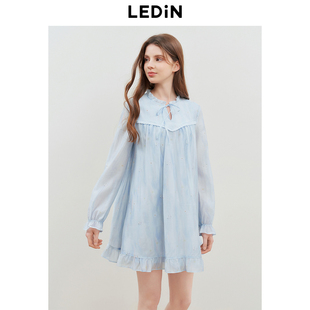 裙气质花边领娃娃裙达 蓝色碎花长袖 乐町韩系A字裙25年春新款 女装