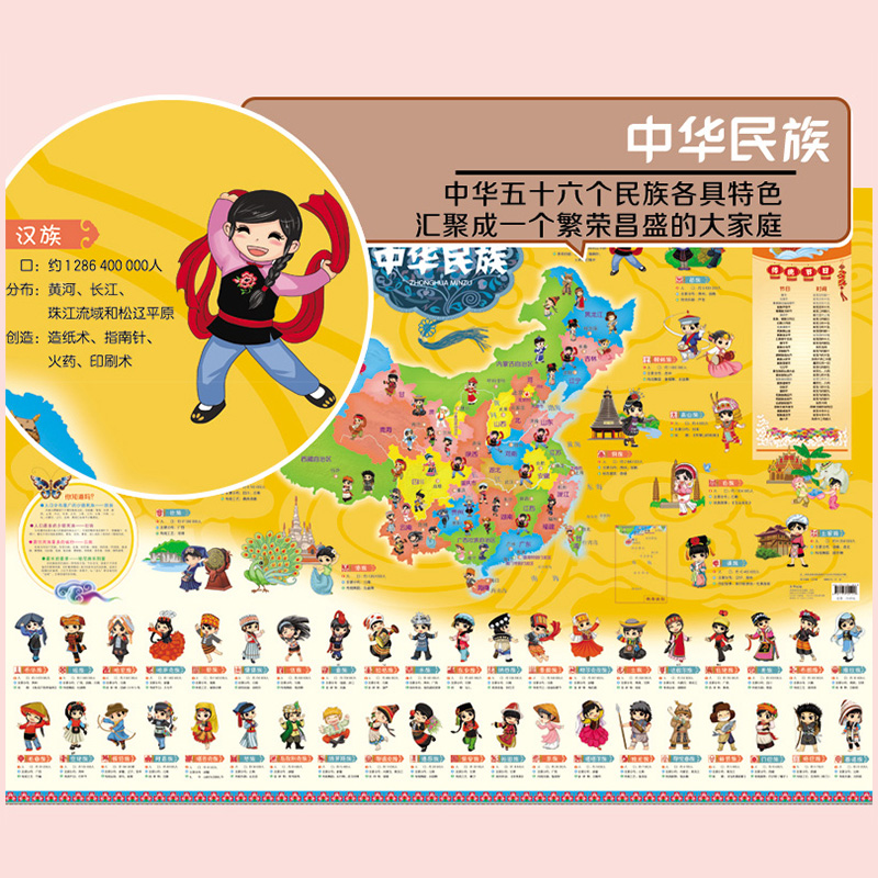 防水覆膜款 2024完整版 启蒙认知科普百科家庭挂墙式 太阳系共2张 儿童地图 儿童房挂图系列 超大挂式 中华民族 新版